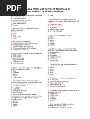 Pada kesempatan kali ini admin akan membahas mengenai soal pas produktif tkj kelas xi dengan jumlah 50 soal pilihan ganda dan lebih menariknya lagi disertai lengkap beserta kunci jawabannya.